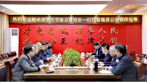 12月5日,校长陈义旺率队赴赣县区开展平安建设挂点帮扶调研。赣县区委常委、政法委书记陈铁军,赣县区政府副区长、公安局局长刘震民陪同调研并座谈。学校党政办、保卫处等部门负责同志参加。