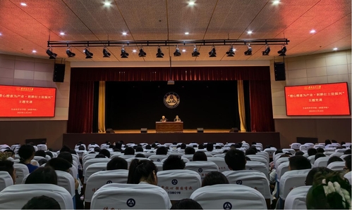 11月10日,全国优秀共产党员袁守根同志在学校大学生人文科技中心演艺厅以《“橙心橙意为产业,初心如磐促振兴”》为题,为脐橙学院师生上了一节生动的主题党课,500余名师生代表聆听党课。