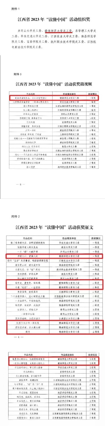 近日,省教育厅关工委公布全省高校2023年“读懂中国”活动作品评审结果,我校获一等奖2项、二等奖2项、三等奖5项,学校关工委获评活动组织奖。