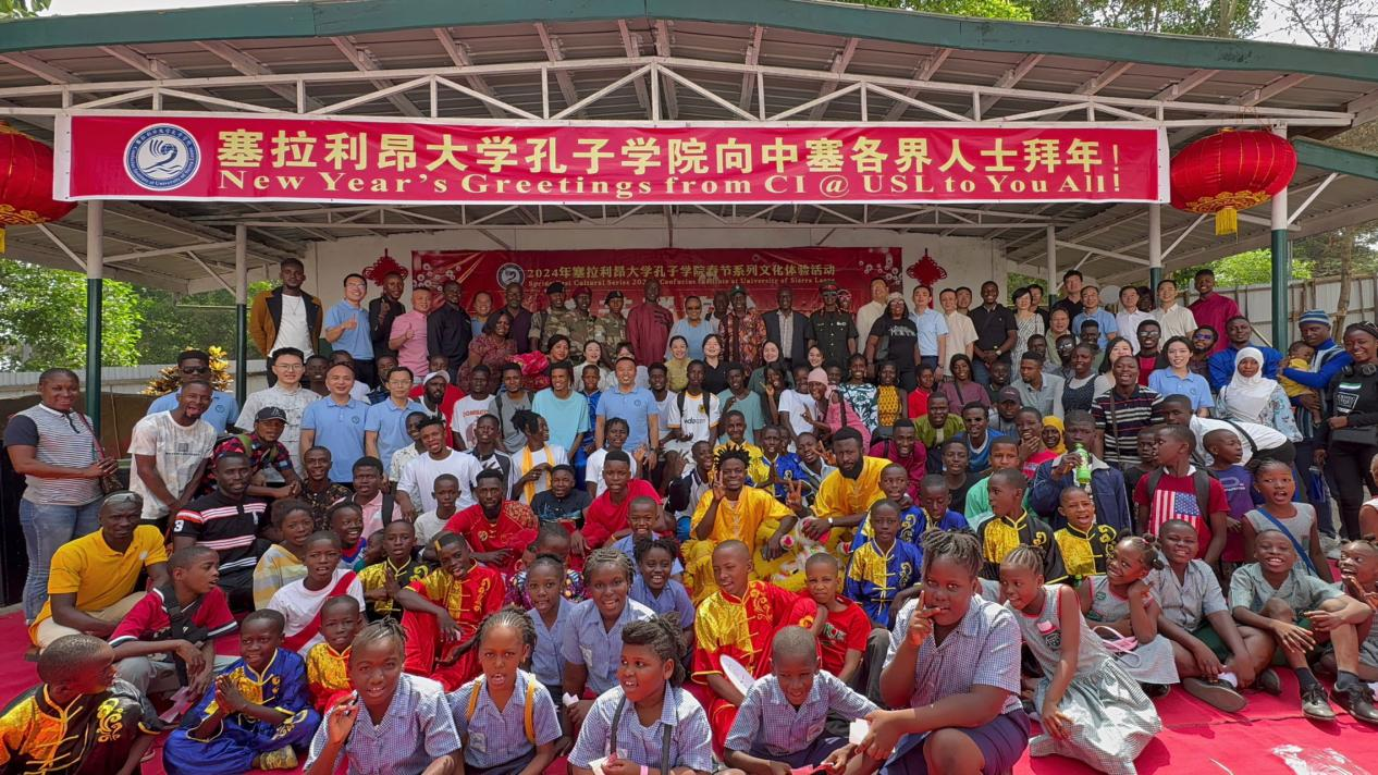 当地时间2月3号,我校塞拉利昂大学孔子学院举办2024年“瑞龙迎春,福启新年”春节文化系列体验活动暨春节联欢会。中国驻塞使馆公参李小勇、参赞杜子君及大使夫人顾韶华女士、塞拉利昂大学副校长曼萨雷(Mansaray)、塞拉利昂大学孔子学院中外方院长、塞大孔院各教学点校长、在塞主要中资机构及企业代表等出席。塞大孔院师生、塞中文爱好者等参加。
