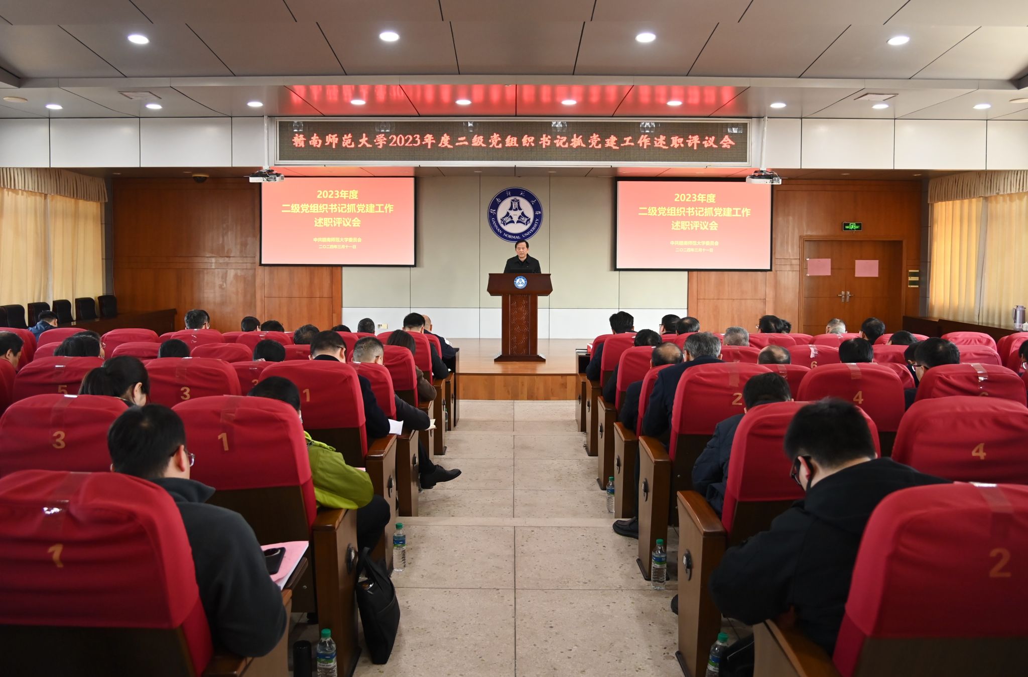 3月11日,赣南师范大学2023年度二级党组织书记抓党建工作述职评议会在行政楼五楼科报厅举行,会议以党委常委扩大会的形式召开,校党委常委班子成员朱小理、陈义旺、刘民、罗序中、易龙、甘雅芬、黄友健、叶云明出席,其他党委委员及党委部门负责同志、部分行政部门负责同志、二级党组织书记和牵头负责同志、教学学院党委副书记、“两代表一委员”和基层党员群众代表参加。党委书记朱小理作点评和总结讲话,党委常委、副校长刘民主持述职评议会。