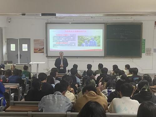 11月10日,校领导胡龙华以《开辟马克思主义中国化时代化新境界》为题,为音乐学2201班、音乐学2202班学生上形势与政策课。