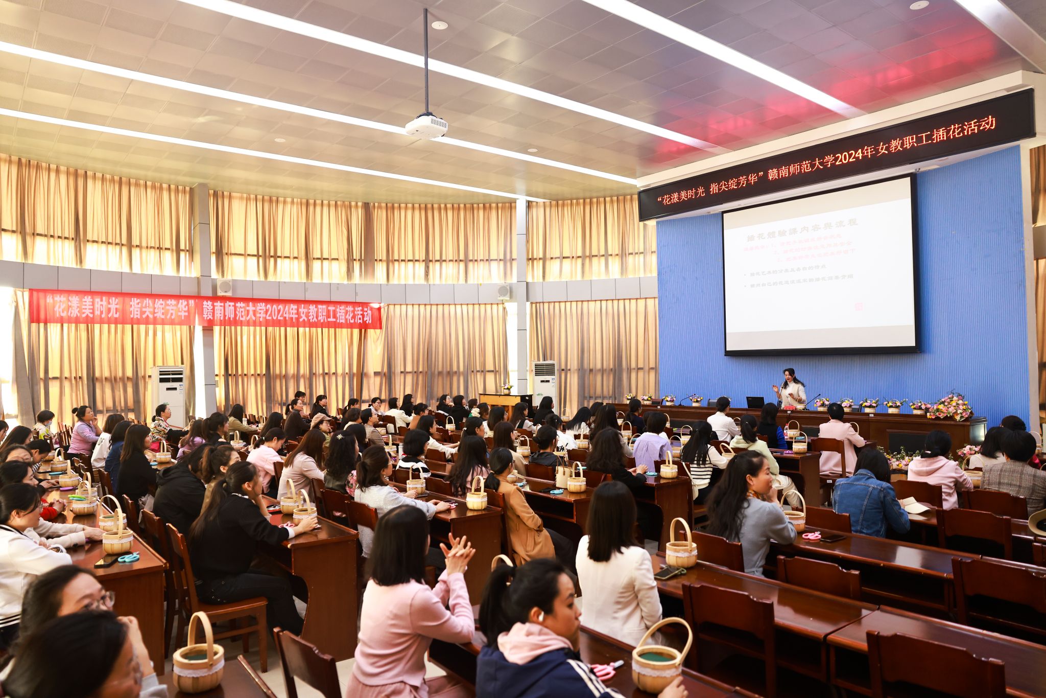 3月26日,学校第二期“花漾美时光·指尖绽芳华”创意插花主题活动在体育学院五环报告厅举行。副校长甘雅芬出席活动,校工会负责同志、100余名女教职工参加。