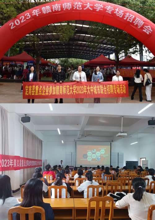 近日,学校联合赣州市人力资源和社会保障局举办“‘就’在赣州‘虔城’似锦高校毕业生留赣就业双选会”,联合崇义县举办“‘迎才入崇 筑梦未来’2023年崇义县重点企事业单位赣南师范大学专场招聘会”。2场招聘会共有120余家用人单位参加,提供招聘岗位1500余个。