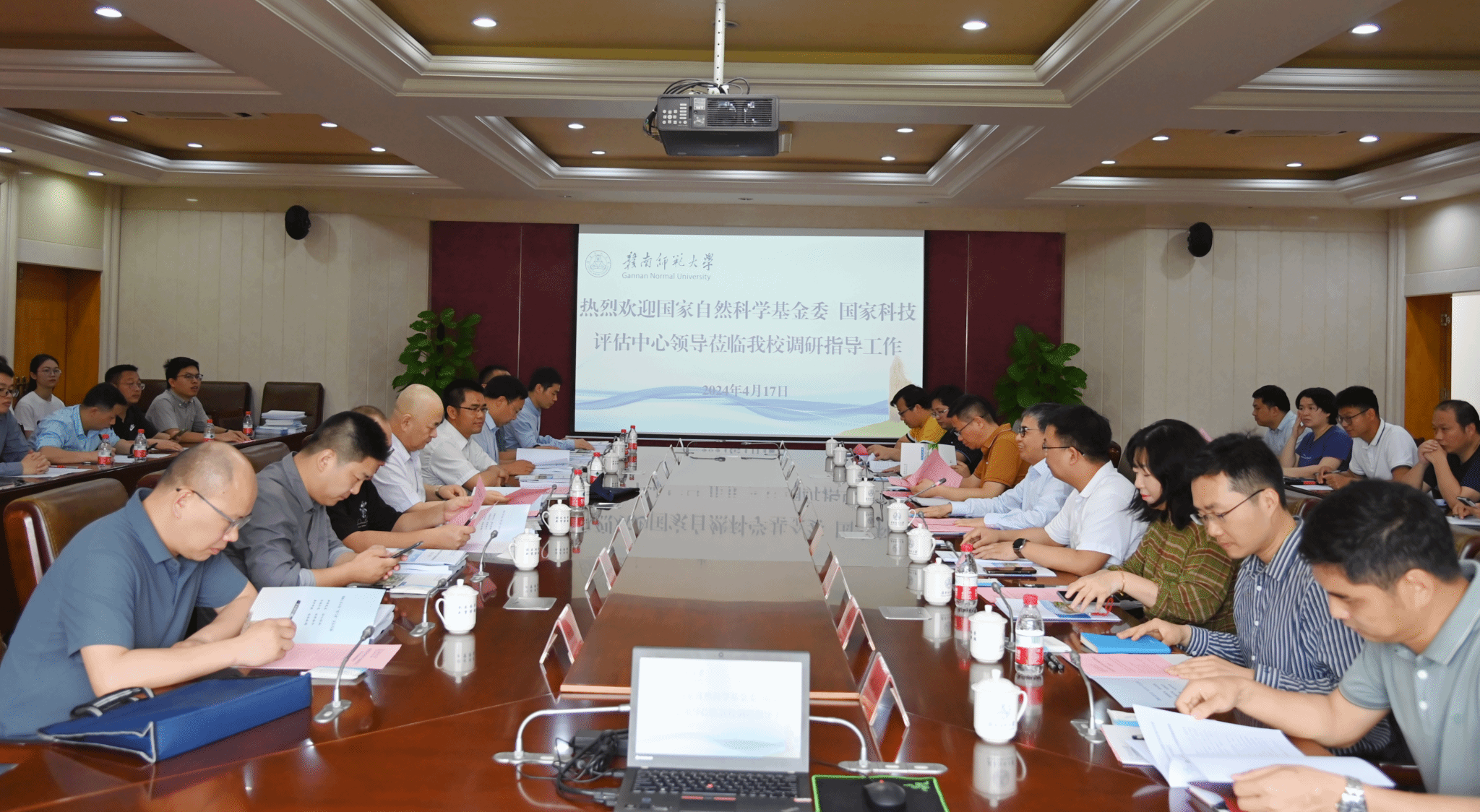 4月17日,国家自然科学基金委计划局绩效评估与成果处处长谢焕瑛、国家科技评估中心研究员田德录到我校调研指导,就我校2024年度国家自然科学基金绩效评价工作开展专题调研座谈。校党委书记朱小理会见来宾,副校长邱小云出席并主持座谈会。科研处、理科学院负责同志、省级以上理科科研平台负责同志、理科学术带头人、国家自然科学基金项目负责人代表40余人参加会议。