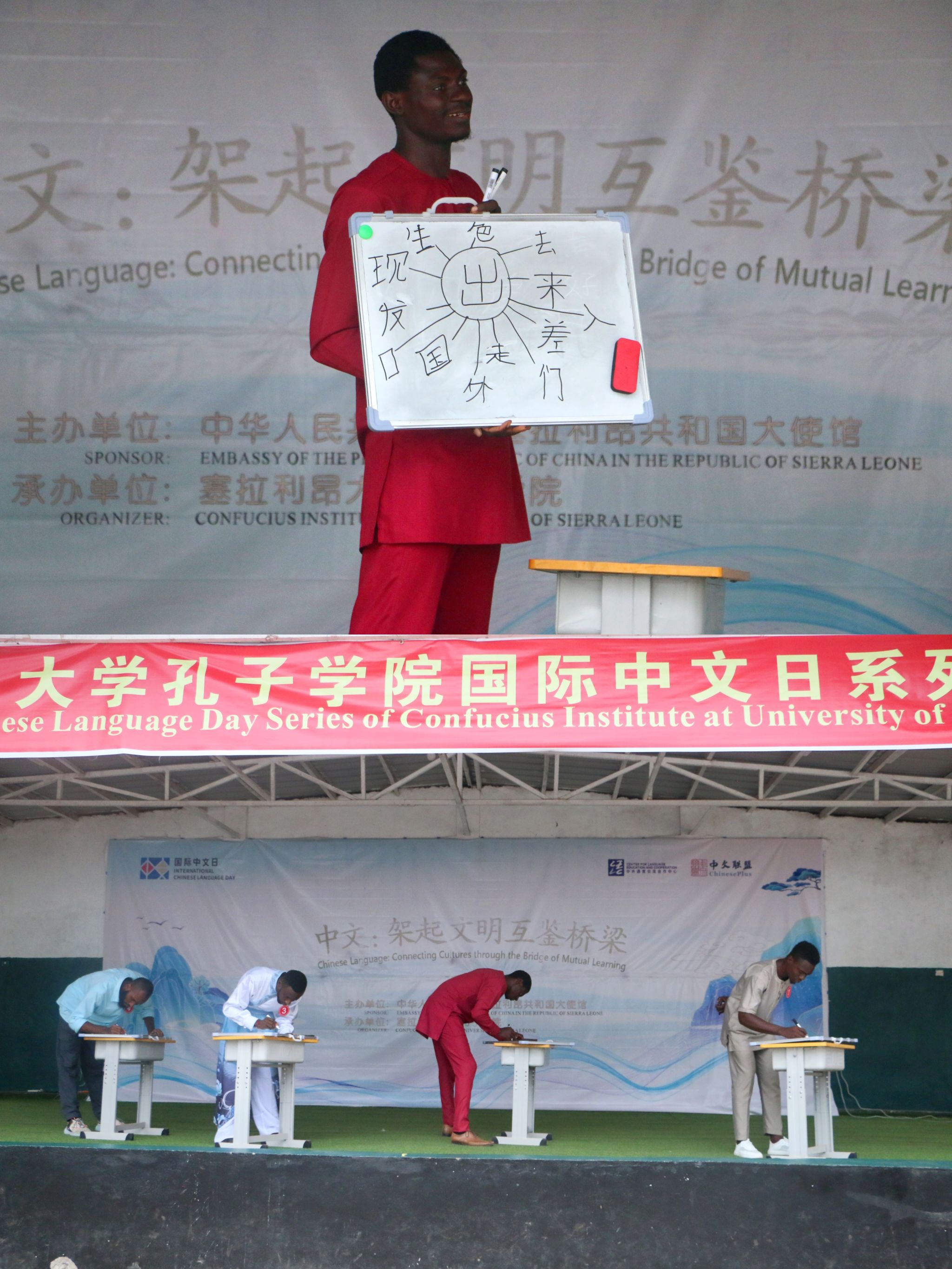 2024年4月19日是中国农历二十四节气之一的“谷雨”,是第15个联合国中文日,也是第5个国际中文日,今年的国际中文日主题为“中文:架起文明互鉴桥梁”。为了庆祝国际中文日,我校塞拉利昂大学孔子学院分别举办了汉字听写比赛初赛和中文影视配音比赛。本次庆祝活动除文艺表演外,还融合了汉字听写比赛决赛和中文影视配音比赛优秀作品展示。国际中文日系列活动的成功举办,不仅展现了我校塞大孔院中文教育的优秀成果,也进一步促进了中塞两国文化的交流与融合。活动在当地引起热烈反响,塞拉利昂国家电视台(SLBC)、非洲青年之声(AYV)等塞主流媒体对本次活动进行了报道。