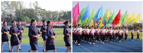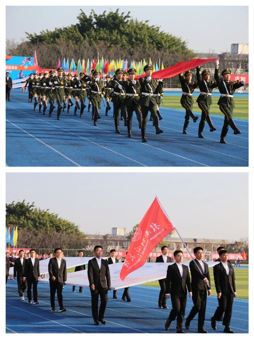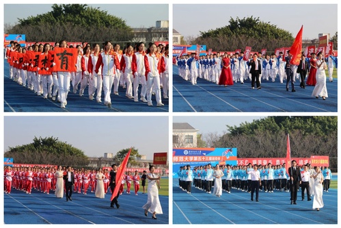 开幕式上,国旗护卫队方阵,校旗、礼仪方阵、彩旗方阵、15个教学学院方阵队依次经过主席台,展现我校师生良好的精神风貌。