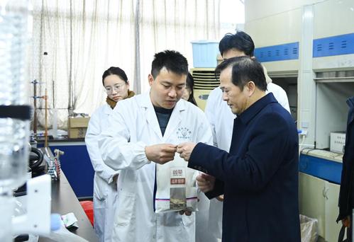 下午,朱小理来到五教610实验室,看望正在开展科研实验的师生,亲切询问科研工作进展、实验成果等情况。了解到项目主要以特色中药和天然药物为研究对象,面向国家重大需求,保障人民生命健康时,朱小理鼓励同学们坚持理想,脚踏实地,积极投身科学研究,培养科研思维,勇于探索、敢于突破。勉励大家要积极寻求科研成果转化,把论文写在祖国大地上。