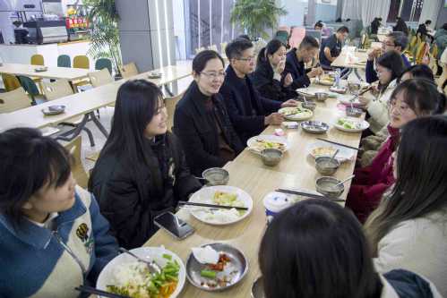 课后,甘雅芬在南苑餐厅与学生共进晚餐,倾听学生心声,围绕食品安全、食堂卫生环境、饭菜品质等方面与大家亲切交流。