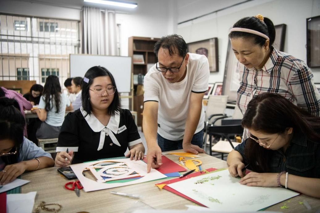 以美润心。美术与设计学院举办“纸抒心情”客家非遗体验活动。客家纸雕非遗传承人张寿疆详细介绍了客家纸雕文化的由来与发展,并带领学生体验传统客家纹样纸雕刻画,让学生把所思所想展现于纸上,在雕刻中感受自己的内心世界,缓解内心压力。