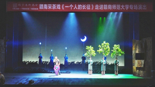 9月21日至22日,国家艺术基金资助项目赣南采茶戏《一个人的长征》在我校聂耳剧场精彩上演,此次演出是该剧进校园的首场演出,让青年学子在红色剧目中领悟革命精神,激发爱国热情。