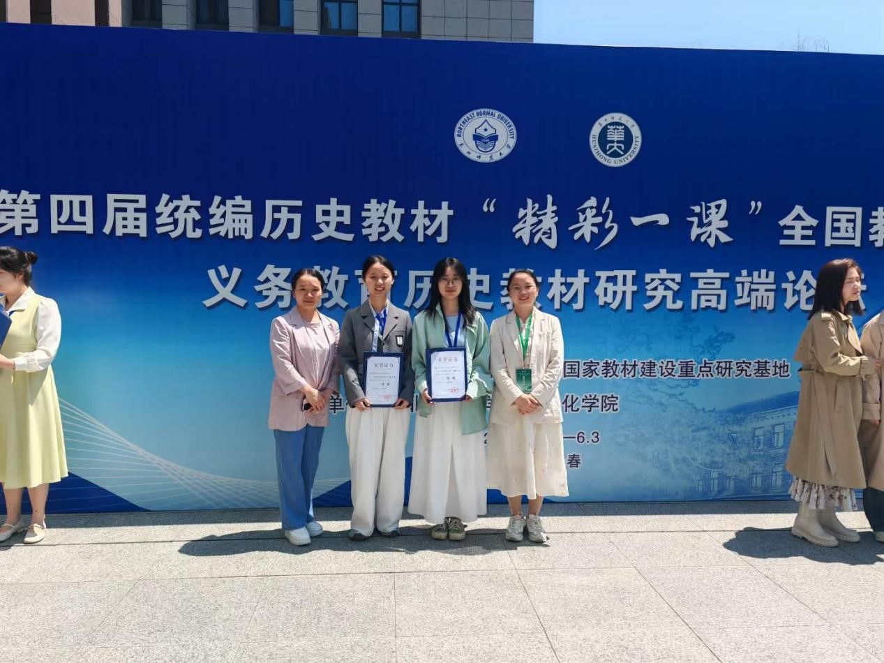 6月3日,第四届统编教材“精彩一课”全国教学大赛暨义务教育历史教材研究高端论坛在东北师范大学落下帷幕。我校历史文化与旅游学院历史学2101学生欧阳明敏和历史学2102学生郭思萍分别获得全国一等奖和三等奖,我校教师郭秋兰、杨小凤荣获“优秀指导教师”。