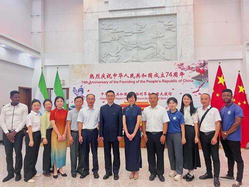 当地时间9月21日,中国驻塞拉利昂使馆隆重举行庆祝中华人民共和国成立74周年招待会。中国驻塞拉利昂大使王擎夫妇、塞代理外交部长奥加利(Alghali)等塞政府和社会各界人士、当地友好组织、各国驻塞使节、中资机构和华侨华人代表等200余人出席。我校塞拉利昂大学孔子学院师生受邀参加此次招待会,为与会嘉宾献上中塞文艺节目。