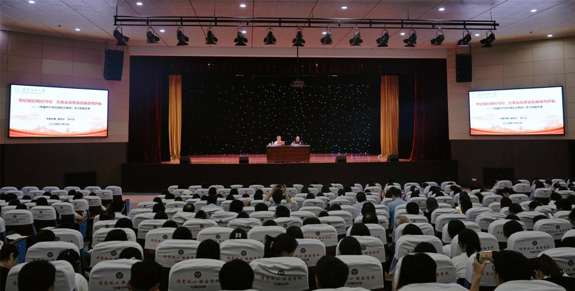 邱小云围绕“深刻认识《条例》修订的重要意义”“准确把握《条例》修订的主旨要义”“认真抓好《条例》的贯彻执行”三个方面进行讲解,要求广大师生党员要深刻领会学习《条例》的精神实质和实践要求,自觉维护党的纪律,筑牢思想防线,强化责任落实,确保党纪学习教育常态化、长效化,将学习成果转化为推动工作的强大动力,以实际行动为学校事业高质量发展保驾护航。