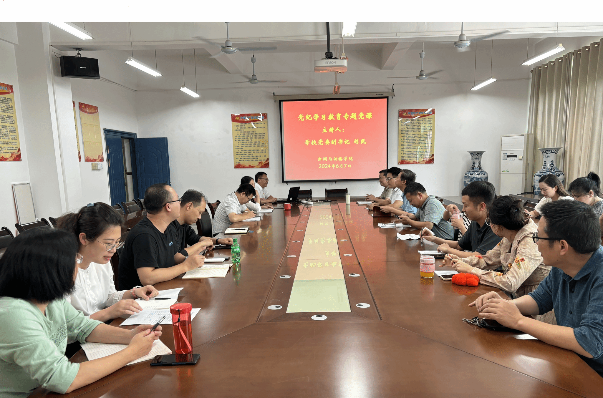 6月7日,校党委副书记刘民以“争做讲政治、守纪律、肯担当、有情怀的新传人”为题,为新闻与传播学院教工党员讲授党纪学习教育专题党课。