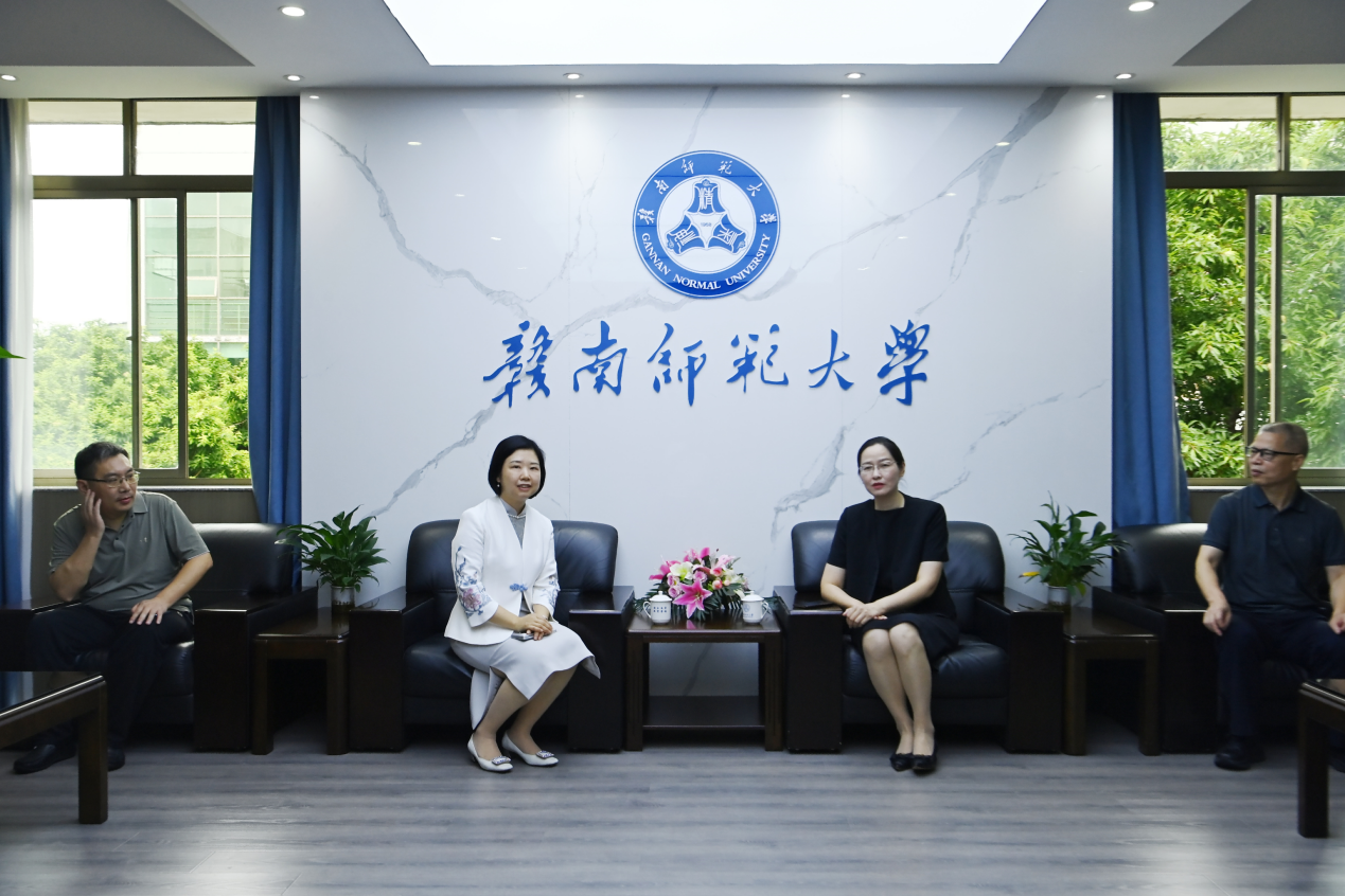 6月4日,赣州市统计局党组书记、局长杨幸丽,四级调研员刘友辉,党组成员、总统计师林文来访我校。校党委常委、副校长甘雅芬会见来宾,经济管理学院、数学与计算机科学学院相关负责同志参加座谈。