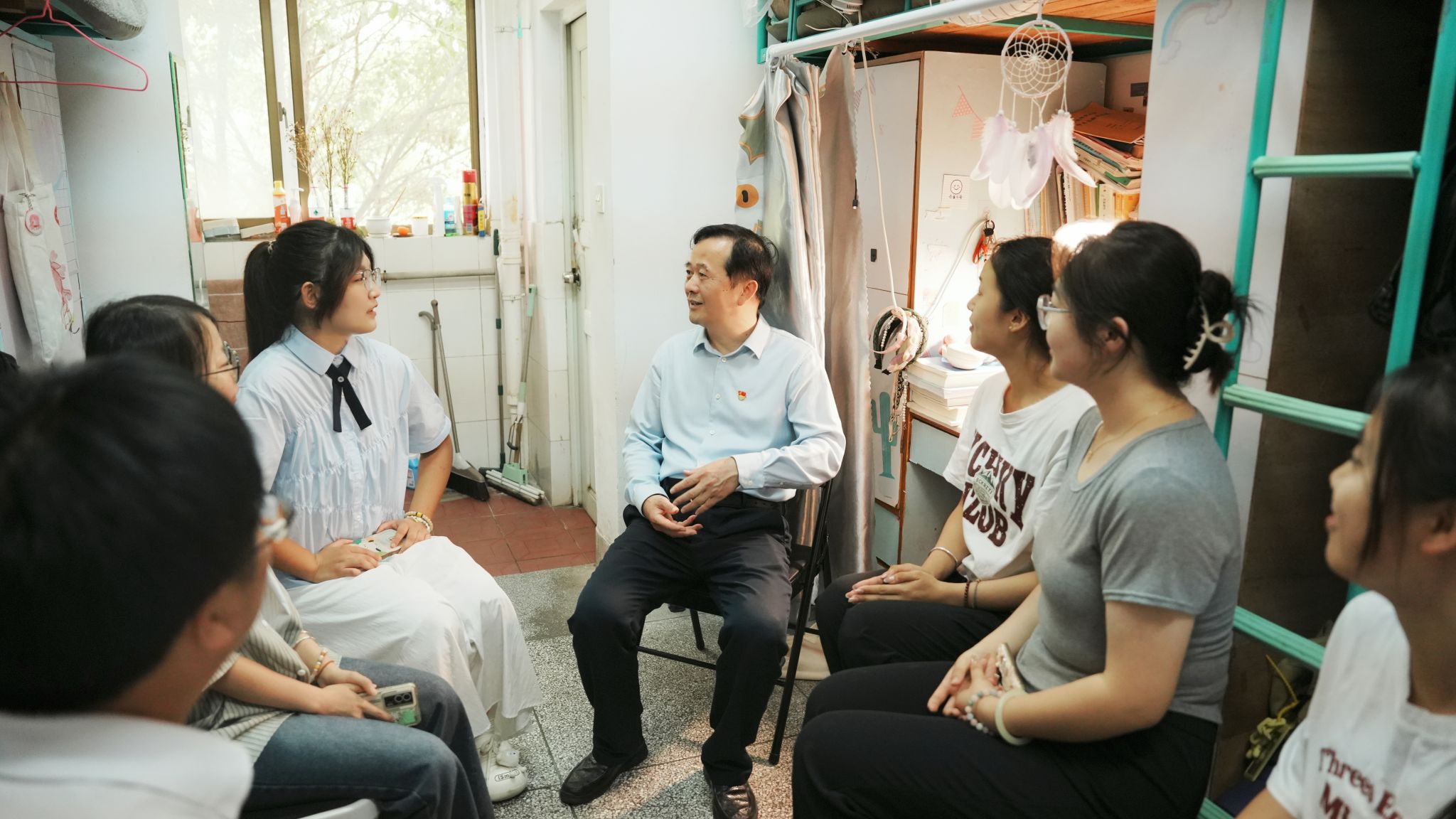 “寝室关系怎么样?”“学校生活安排得怎么样?”“考研路上有困难,坚持就是胜利!”在西苑四栋学生寝室,朱小理与同学们围坐一起亲切交谈,了解大家学习生活状态,倾听同学们的心声,耐心回答同学们的问题,为2025届考研学生加油鼓劲。“今天的寝室座谈特别暖心,大家把自己感受到的学校的不足之处以及学习上需要帮助的问题都说了出来,朱书记一一解答,详细记录。并教导我们好好学习的同时也要多走出寝室,加强锻炼,提升身体素质。”应用化学专业2102班占雨鑫说道。