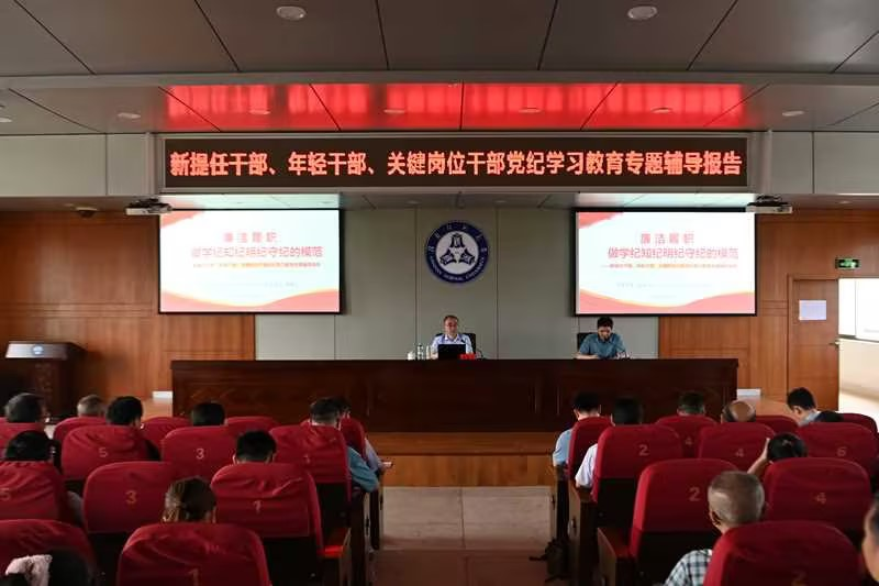 黄保文以《廉洁履职 做学纪知纪明纪守纪的模范》为题,结合违反“六大纪律”典型案例,对相关纪法条款规定和高校领域存在的违纪风险点,进行深入剖析和阐释。报告紧密结合高校教学、科研、管理实际,让党员干部进一步深入理解掌握《条例》主旨要义和实践要求,将学习成果内化于心、外化于行,不断提升依规依纪依法履职的能力和水平。