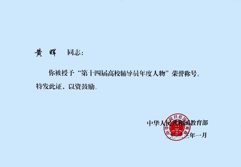 近日,由中宣部、教育部共同组织开展的2022年“最美高校辅导员”推选展示活动中,我校经济管理学院党委副书记黄晖获“第十四届高校辅导员年度人物”荣誉称号。这是学校首次获得该项荣誉。