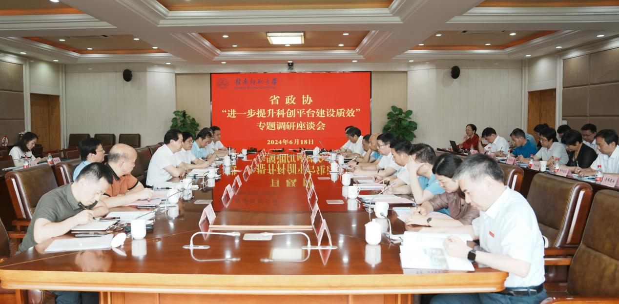 6月18日,省政协副主席卢天锡莅临我校调研并召开“进一步提升科创平台建设质效”座谈会。学校党委书记朱小理,副书记、校长陈义旺,党委常委、副校长邱小云,党委常委,统战部部长陈文红,党委(校长)办公室、科研处负责同志陪同调研并座谈。座谈会由赣州市政协副主席蓝赟主持。