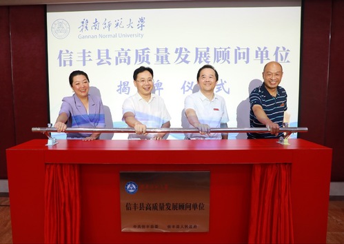 座谈会上,陈义旺、张琳分别介绍了双方校地合作事项及脐橙现代产业学院推进情况。朱小理、陈义旺、袁炎、张琳为信丰县高质量发展顾问单位揭牌。