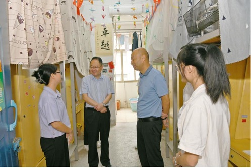 在西苑学生宿舍,陈义旺与近日返校的学生进行亲切交谈,仔细询问学生暑期的学习生活情况和家庭生活状况,勉励大家以更加饱满的精神状态投入到新学期的学习生活之中,努力成就最好的自己。