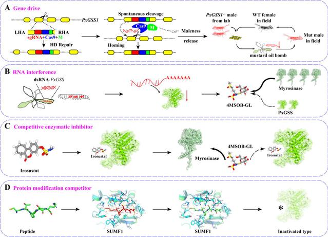 综述首次总结了过去20年来小菜蛾硫苷硫酸酯酶PxGSS的研究进展,讨论了人工智能驱动的靶向PxGSS的害虫控制技术的潜在应用。该技术有望克服当下小菜蛾防治带来的抗性困局,有力推动靶向PxGSS害虫防控方法的研发和田间应用,为其它农业昆虫重要解毒酶的研究和防控应用提供重要思路。