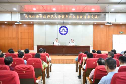 8月20日,江西科技师范大学全体校领导、部分中层干部来我校考察交流。校领导朱小理、于保春、肖笃森会见来宾并交流座谈,党政办公室、人事处、教学质量监督与评估中心、发展规划处、科研处、计财处等单位负责同志参加。