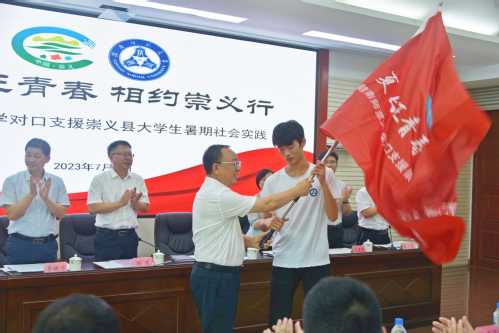 近日,学校对口支援崇义县大学生暑期社会实践活动启动仪式在崇义县公务大楼2号会议室举行。副校长刘民出席,崇义县县委书记李国泉宣布活动启动并授旗。学校历史文化与旅游学院负责同志,崇义县相关同志参加。