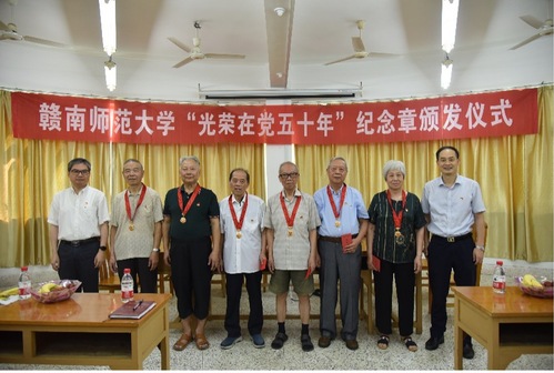 50年党龄,50载荣光。6月29日,在建党102周年到来之际,为扎实推动主题教育走深走实,学校在章贡校区老同志活动中心举行“光荣在党50年”纪念章颁发仪式。学校党委副书记胡龙华出席并讲话,校党委常委、副校长邱小云主持仪式。肖定智、朱昌彻、顾川生、徐普生、曾庆云、周逸树等六名“光荣在党50年”老党员,离退休工作处负责同志,离退休党委各党支部、各协会有关同志参加。