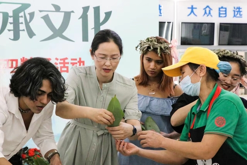 活动中,师生们互献餐厅特制的艾叶花环、在师傅们的示范下一同学习体验包粽子。“原来端午节赛龙舟和吃粽子是来源于爱国诗人屈原!”孟加拉国新生阿萨玛手拿餐厅准备的粽子、咸蛋、糕点等伴手礼,感动于中国人的家国情怀。“我特别喜欢这个节日,回国后我也要给家人包粽子,给他们讲端午的故事。”来自乌兹别克斯坦的夏克拿着自己包的粽子和同学分享道。大家纷纷表示,此次活动将中国传统文化与美食相结合,寓教于乐,是一次难得的沉浸式体验。