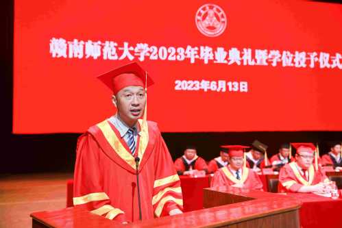 陈义旺在毕业典礼致辞中祝贺2023届全体学生顺利毕业,并围绕“传承红色基因,共赴时代之约,在中国式现代化进程中书写绚丽篇章”指出,在校期间,同学们亲历中国共产党成立100周年、新中国成立70周年、中国共青团成立100周年和党的二十大胜利召开等重大历史时刻,见证亿万人民为打赢疫情防控阻击战万众一心、共克时艰的磅礴力量,参与学校申报博士学位授予单位、建设高水平综合性师范大学的发展进程,在为梦想绽放不懈奋斗、为砥砺青春勇毅前行的道路上,打上了深深的赣师烙印,获得了不畏将来的勋章。他勉励广大毕业生,要大力传承红色基因,践行“国之大者”。立大志、修大德、担大任,勇敢奔赴中国式现代化建设的战场,在火热实践中赓续红色血脉。要拥抱伟大时代,勇于创新出彩。以青春行动贯彻落实党的二十大精神,主动融入国家重大发展战略;以青春创造去展现作为,在追求科学和真理的道路上不断攀登;以青春名义甘愿到祖国最需要的地方去,努力在平凡的岗位上干出不平凡的业绩。要保持赶考姿态,做到行稳致远。始终坚守初心、始终脚踏实地、始终心存敬畏,迈着铿锵有力的步伐,奋力在中国式现代化进程中书写绚丽篇章。
