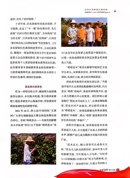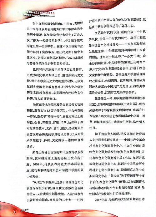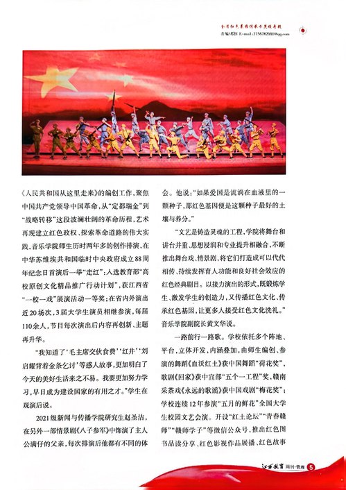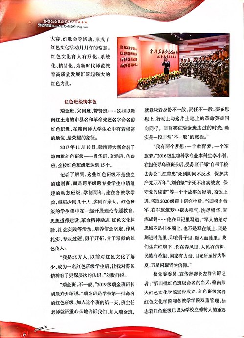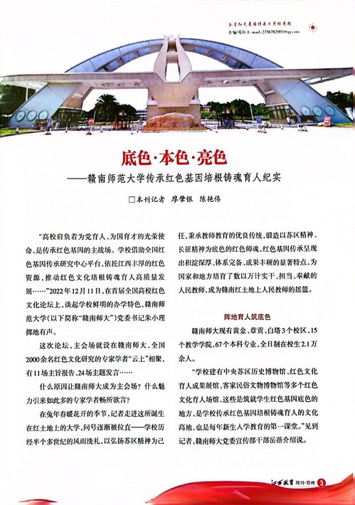 《江西教育》2023年6月刊第1241期,开篇文章以《底色 本色 亮色——赣南师范大学传承红色基因培根铸魂育人纪实》为题,报道我校红色文化育人成效。