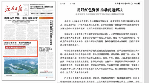 6月4日,《江西日报》以《用好红色资源 推动问题解决——赣南师范大学抓牢调查研究关键点推动主题教育见实效》为题,头版报道我校主题教育开展情况。