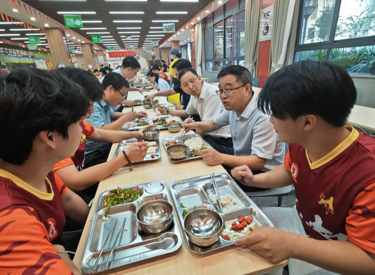 罗序中还深入学生宿舍和食堂,并与师生共聚食堂用餐,期间,罗序中关切询问学生的住宿情况,重点了解了餐饮服务与智能结算系统运行情况,强调要全力保障饮食安全与质量。