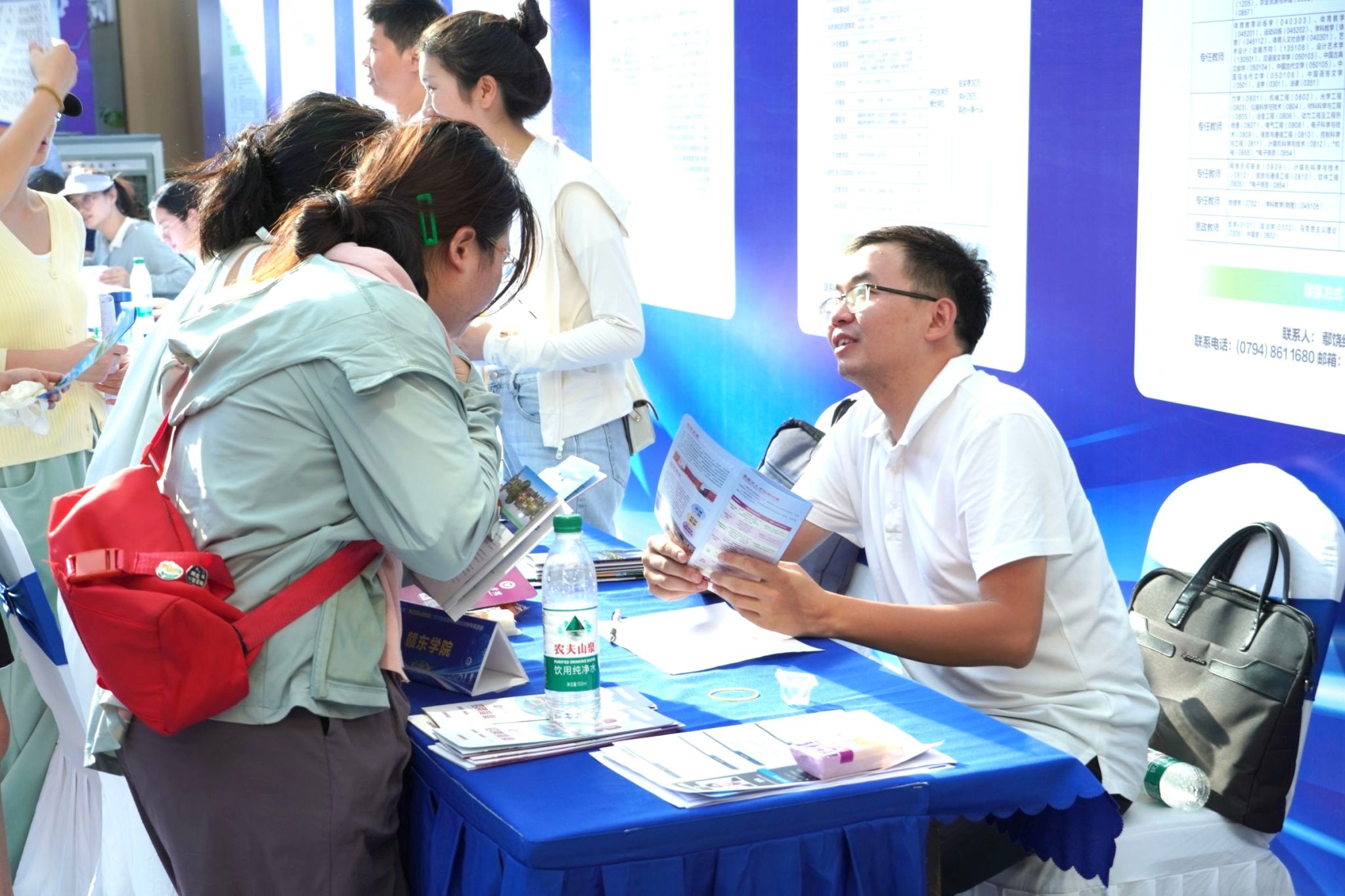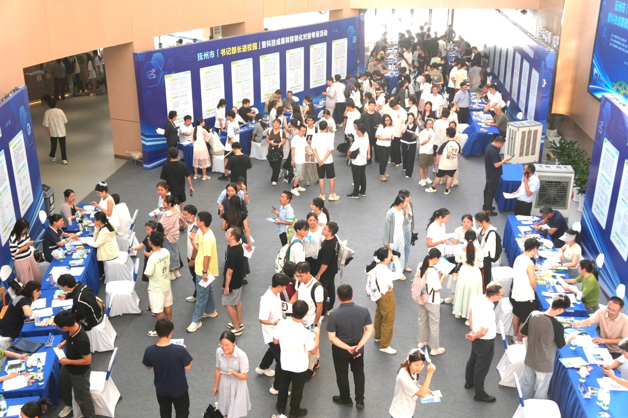 现场还举行了高校毕业生现场招聘和“百博进百企”暨产才融合对接活动。在图书馆一楼,来自抚州的39家企事业单位带来500余个优质岗位,涵盖教育、医疗、智能制造、现代农业、绿色环保等领域。我校毕业生踊跃投递简历,与用人单位面对面交流,招聘会现场气氛热烈。22家抚州企业与在赣高校、科研院所及抚籍在赣博士人才进行深入对接,推动高层次人才团队与产业需求有效匹配、有效落地。