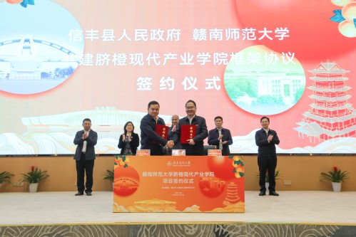 仪式上,我校与信丰县人民政府签署了战略合作框架协议、共建脐橙现代产业学院专项协议和“百校联百县兴千村”行动合作意向。