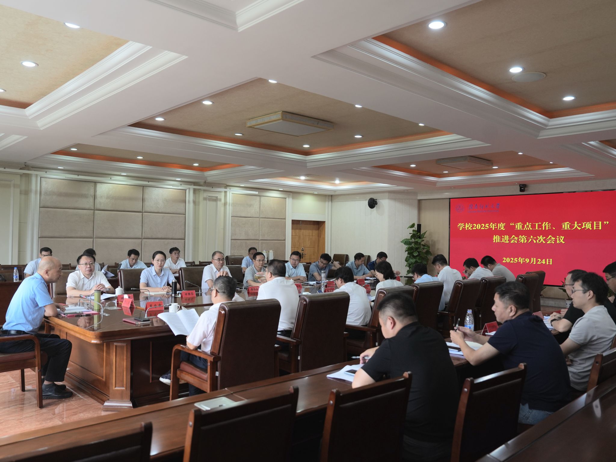 9月24日,学校召开2025年度“重点工作、重大项目”推进会第六次会议。党委副书记、校长陈义旺出席会议并作总结讲话,党委常委班子成员刘民、罗序中、甘雅芬、黄保文、王宗德、叶云明、陈文红出席,党委常委、副校长兼组织部部长肖笃森主持会议。党政办公室、党委组织部、发展规划处、人事处、教务处、研究生院、科研处、学工处、招生就业处、计财处、后勤管理处、资产与实验室管理处、信息与教育技术中心、科技学院、化学与材料学院、生命科学学院(脐橙学院)、美术与设计学院、体育与健康学院以及各现代产业学院负责人参加会议。