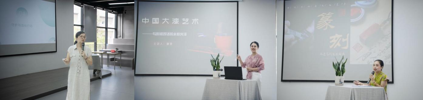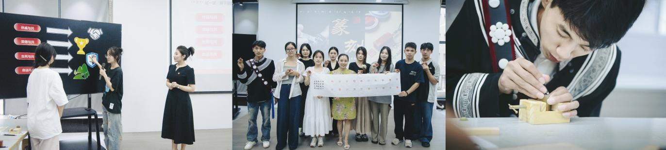 美术与设计学院组织员李旻以“铸牢中华民族共同体意识”为主线,围绕“四个与共”的重要理念与现场学生展开交流讨论。活动中,赣州市章贡区文化馆馆长讲述章贡区非遗文化“家底”,为在场师生搭建起对客家非遗文化的整体认知框架。随后,非遗传承人谢姜老师与罗燕老师分别聚焦漆画、篆刻技艺,为同学们带来专业且生动的专题分享。