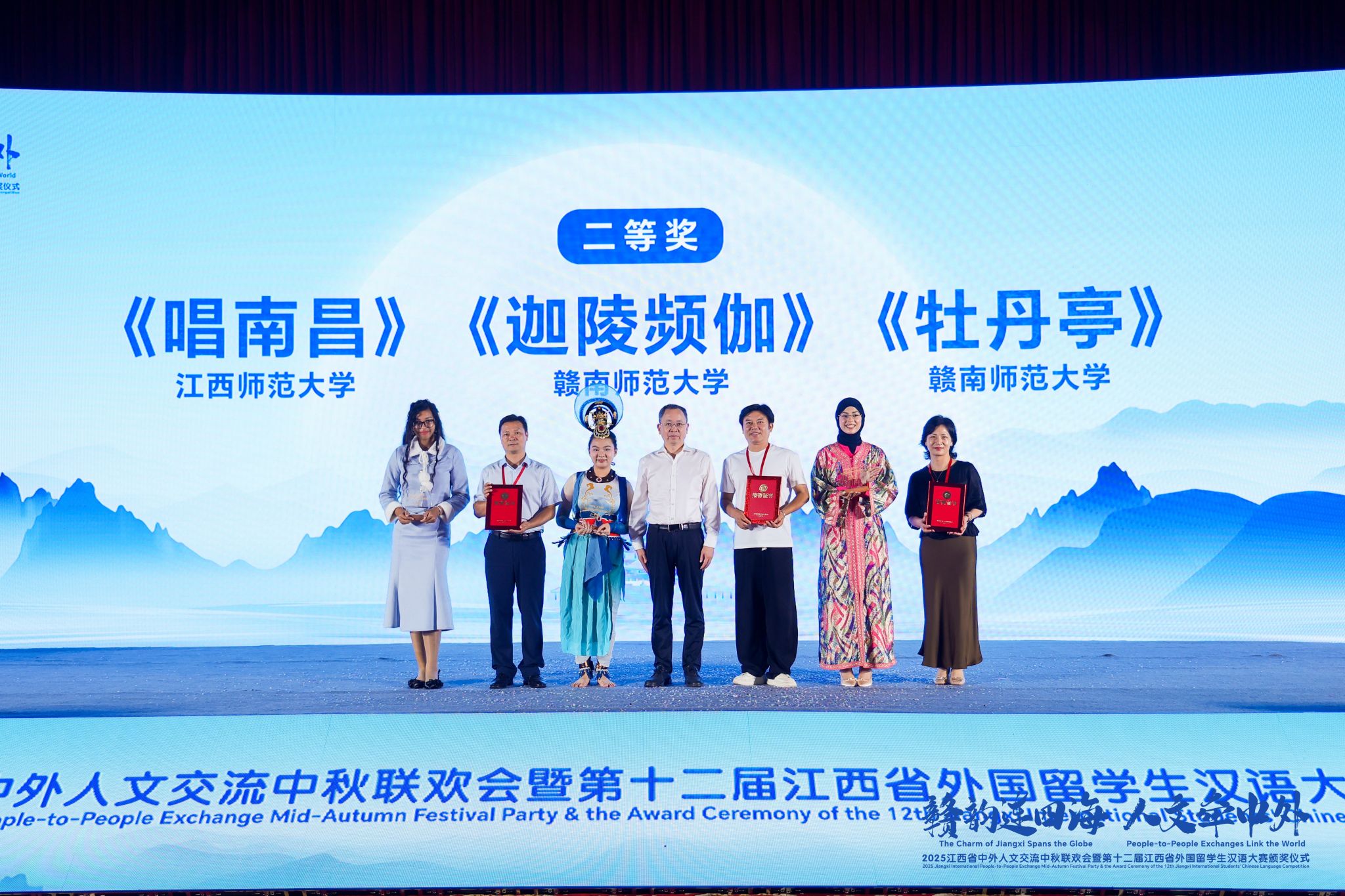 9月25日,第十二届江西省外国留学生汉语大赛决赛暨中国庐山诗会外国留学生专场比赛在南昌举行。经过自我介绍、诗词解析、才艺展示、诗词竞答等阶段紧张激烈的角逐,我校推选作品《迦陵频伽》《牡丹亭》荣获“二等奖”。