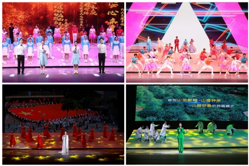 青年风采展演分为“青春心向党”“奋斗正当时”“一起向未来”三个篇章。女生独唱《跟着你就是力量》用歌曲反映学校共青团始终与党同心、跟党奋斗,团结带领全校团员青年为学校高质量发展贡献青春力量,以青春之名致敬伟大时代。歌舞《青春》、体育舞蹈《以青春之名》展现出新时代青年凝聚百年征程的初心信仰,用蓬勃之气回应强国有我的时代强音。《世界橙乡“她”最美》以情景剧的方式讲述了我校青年科技特派团立足红土,积极投身苏区振兴发展伟大实践,在乡村振兴的大舞台上建功立业,矢志坚持“把论文写在红土地上”的故事。微团课《青春建功正当时》回望团史,从中国青年坚定理想、吃苦耐劳、勇挑重任、接续奋斗的肖像中找寻争做新时代好青年的成长密码。配乐朗诵《让青春在奋斗中闪光》以学校不同时代的师生视角出发,在见证和服务学校发展中,坚定打赢申博攻坚战的信心决心,为推动学校事业高质量发展而接续奋斗。歌舞《把心交给你》展现了新征程上,赣师青年将忠诚捍卫“两个确立”,坚决做到“两个维护”,坚定信念永远跟党走的价值追求。