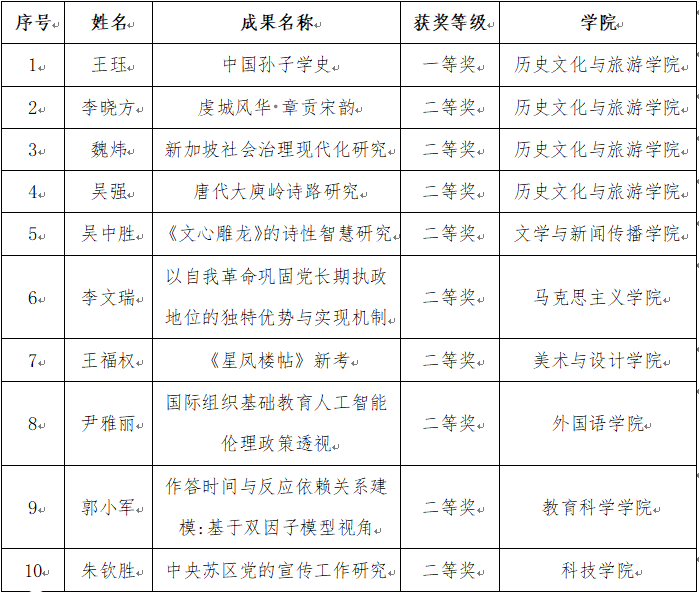赣南师范大学江西省第二十一次社科成果奖获奖情况一览表