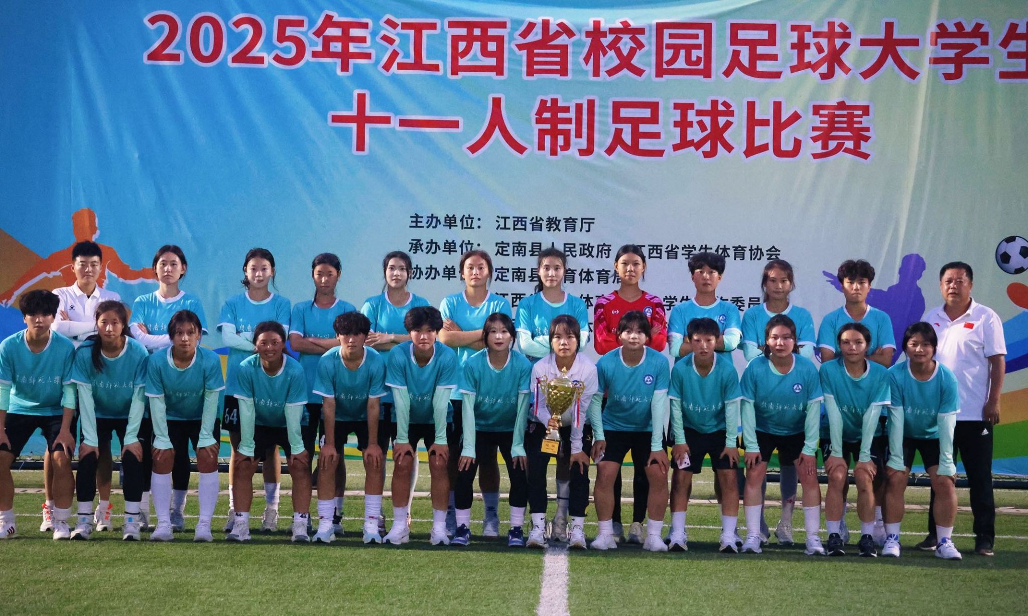 在刚刚结束的2025年江西省校园足球大学生十一人制足球比赛中,体育与健康学院与足球现代产业学院联合组队,勇夺女子甲组冠军,男子甲组季军。