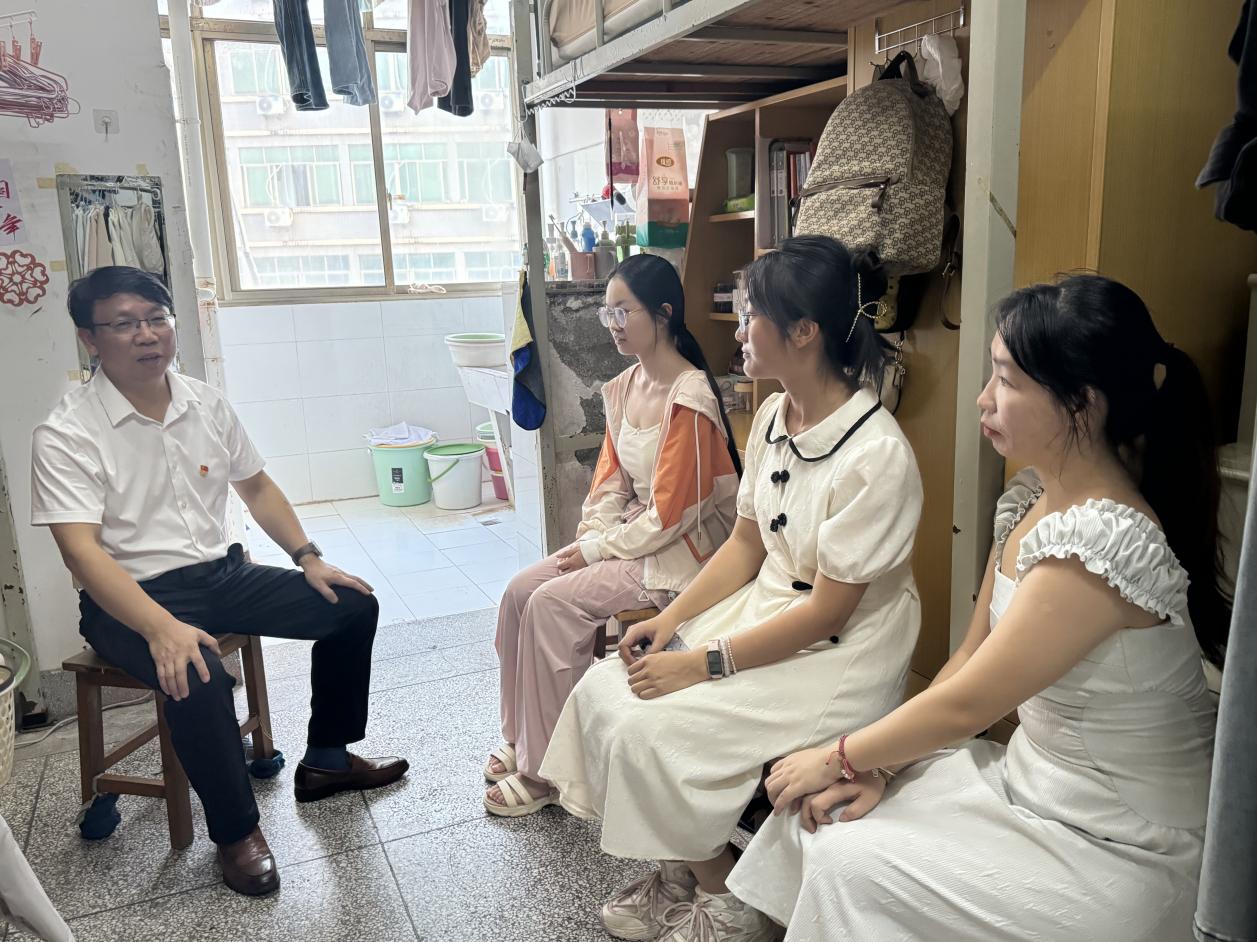 班会结束后,王宗德深入学生宿舍,与同学们深入交流。“学习生活是否适应?”“对学校工作有何建议?”每到一处,他都细致询问同学们的学习进展、生活状况与未来规划,认真听取大家对校园管理与服务的意见建议,并勉励同学们珍惜大学时光,夯实专业基础,锤炼教学本领,未来扎根基础教育一线,以实际行动践行“博达毅卓”校训。