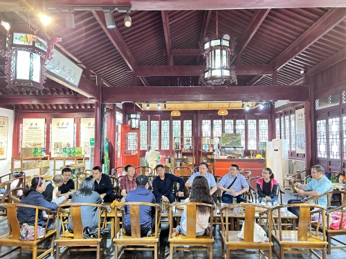 科技服务团成员先后参观了上犹5678记忆馆和门匾文化园,调研了“园村乡村振兴大讲堂”、村史馆、孝老食堂和茶园的运营情况,在园村文明实践站举行了图书捐赠仪式。实地调研后,科技服务团成员与园村村干部、产业负责人和当地群众召开了学习座谈会,会议学习了党的二十大精神和全国“两会精神”,参会人员就乡村产业振兴发展、乡村文化建设、乡村旅游发展和村集体经济收入等方面展开座谈交流。