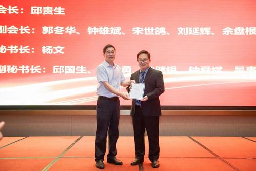 期间,罗序中为惠州校友会第三届理事会会长邱贵生及其他成员颁发聘书。
