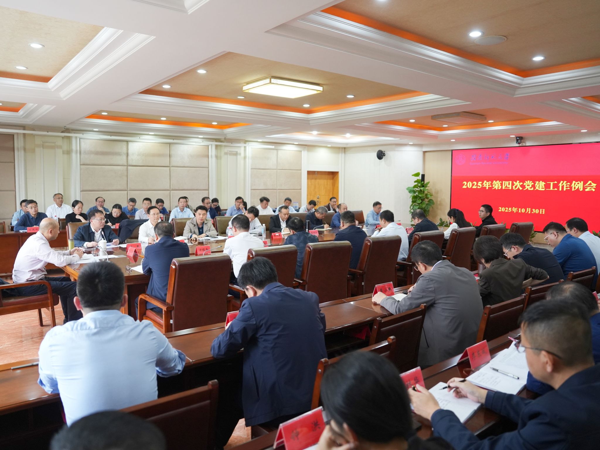 10月30日,学校召开2025年第四次党建工作例会。校党委副书记、校长陈义旺出席会议并讲话。党委副书记刘民主持会议。党委常委、副校长兼组织部部长肖笃森,党委常委、宣传部部长叶云明,党群部门负责同志、二级党组织书记参加。机关党支部书记列席。