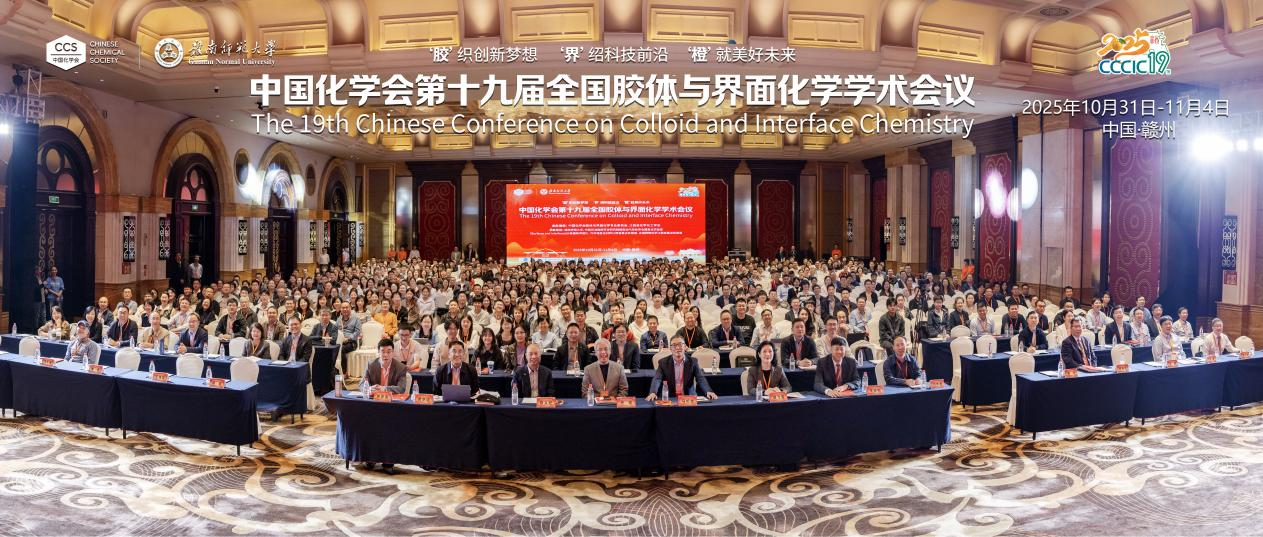 10月31日至11月4日,由中国化学会胶体与界面化学专业委员会、江西省化学化工学会联合主办,赣南师范大学、中国石油勘探开发研究院提高油气采收率全国重点实验室、《Surfaces and Interfaces》(《表面和界面》)、竹纤维复合材料江西省重点实验室和合成药物化学江西省重点实验室共同承办的第十九届全国胶体与界面化学学术会议在江西赣州召开。本届会议以“ ‘胶’织创新梦想,‘界’绍科技前沿,‘橙’就美好未来”为主题,吸引了来自全国250多所高校、科研院所及产业界的1400余名专家学者和青年科技工作者齐聚一堂,围绕胶体与界面化学领域的前沿动态、关键技术突破与国家战略需求展开深度对话,共绘胶体与界面化学学科创新发展蓝图。