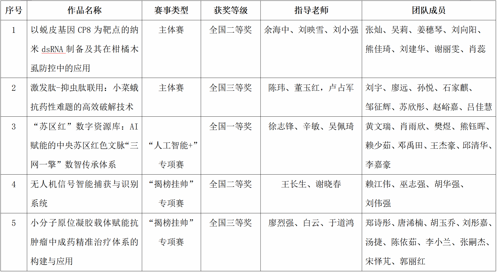 10月31日-11月3日,由共青团中央、中国科协、教育部、中国社会科学院、中国工程院、全国学联、江苏省政府共同主办的第十九届“挑战杯”全国大学生课外学术科技作品竞赛终审决赛在南京大学圆满落幕。我校荣获主体赛全国二等奖1项、三等奖1项;“人工智能+”专项赛全国一等奖1项,“揭榜挂帅”专项赛全国二等奖1项、三等奖1项,本届竞赛我校“科技发明制作”类作品首次进入国赛终审决赛。