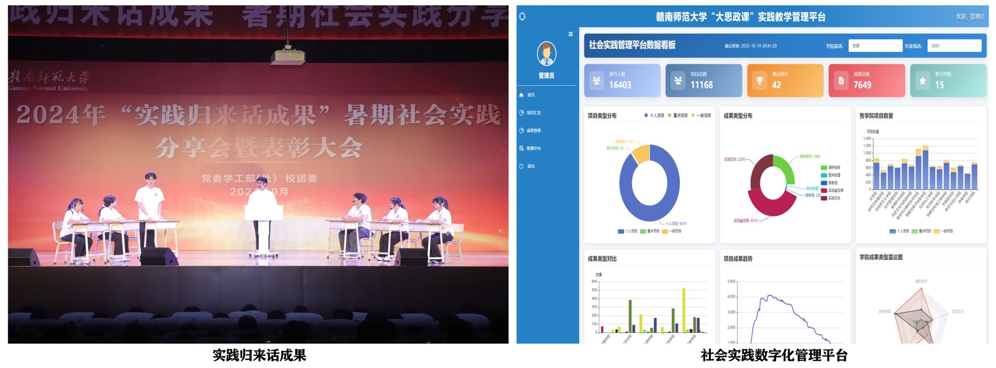积极探索辅导员队伍与思政课、专业课教师协同育人机制,创新搭建社会实践数字化管理平台,按照主题化、课程化、数字化、全员化的工作思路,生动开展大学生社会实践。2025年暑期,学校1076支团队、400余名指导教师、16403名学生深入赣南等原中央苏区开展社会实践,形成图文资料、视频记录、调研报告等实践成果7672项。